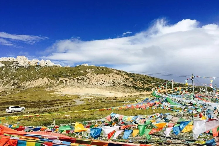 翻上川藏线最后一个山口米拉山口,五色经幡在这座海拔5000米的山上随风飘扬。